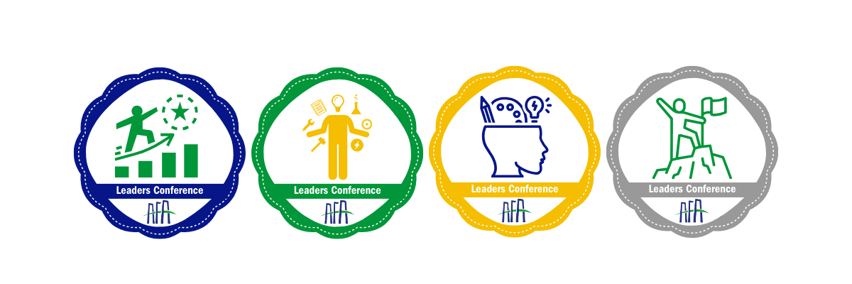 Since 2023, AFA Leaders Conference delegates can earn a badge which indicates their growth and proficiency in the six AFA leader competencies , and their commitment to lifelong learning. The badge they earn aligns with the specific Track they completed. Students can earn a new badge each year.